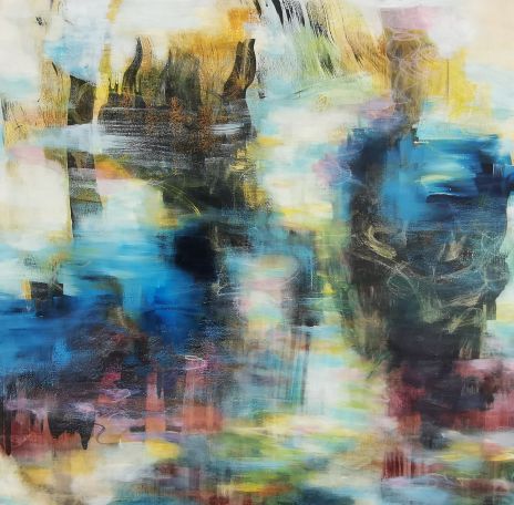 Lisätiedot (pohjamateriaali): sekatekniikka kankaalle